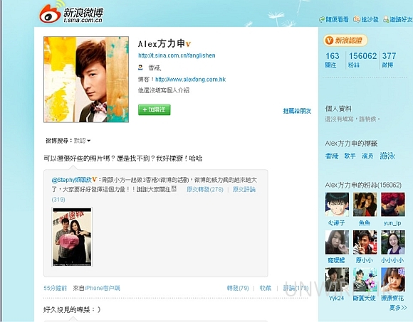 3香港年前已在Planet 3手機網站特設『Social王』專區,匯集Facebook、Windows Live Messenger及3messenger等多個最流行的社交網絡服務,自推出以來深受歡迎,客戶無論何時何地亦可透過手機享受社交網絡服務的樂趣。我們很高興是次獲得新浪網的支持,全港獨家推出首項獲得認證的手機『微博速報』服務,令3香港的流動社交網絡服務陣容更精彩。自去年8月啟用以來,新浪微博深受香港及中國網民支持,至今年四月為止,註冊用戶總數目已超越一千萬,其中超過2,000名香港藝人及名人更是新浪微博的常客。