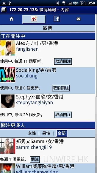 #「微博速報」更備免費附加功能,以MMS方式無限接收Facebook及POP3電郵的更新提示。