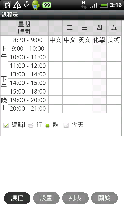 應用軟件 應用軟件 Android App [Android] 上課時間表 -《課程表》 作者 遊子 發佈日期 2011-08-18 閱讀時間 3分鐘 字體大小 A A A 分享 讚好 0 0 個讚 分享 複製連結 WhatsApp Facebook Threads 八月絕大部份同學還在放暑假,現在說上學的事似乎有點掃興,不過算起來距離九月一號開學不到兩個星期,也是時候慢慢收拾心情,開始做好準備迎接新學年。《課程表》是一個時間表,適合在開學初期還記不住課堂編排時使用。 可更改時間及新增空白列。 設定時間表顏色、語言、是否顯示週末及時間。 建立不同時間表,例如一個是科目,另一個是上課地點或課室,可切換查閱。 軟件名稱:《課程表》 售價:免費 系統:Android 2.1 或以上 檔案大小:170KB 下載網址:https://market.android.com/details?id=thirdgcnbeta.com androidapp