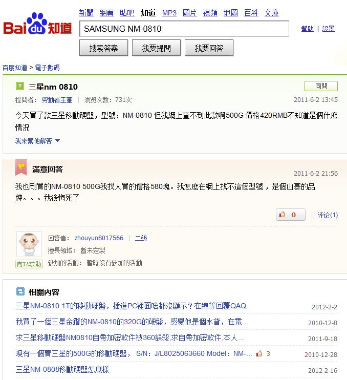 有用家就拆開硬碟盒,原來內裡只是一支USB手指再加上一堆有重量的螺絲物體,而重量分布經過悉心安排。小編再走到百度上查看,原來也有不少用家中招,表示網上找不到此型號,有部分能夠運作但認為是水貨,還有用家在售賣。售價亦不便宜,500GB要420~580人仔。