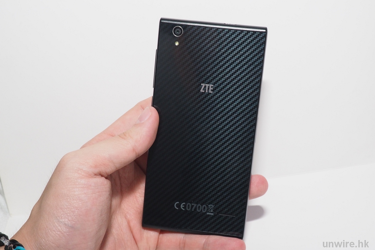 話到明「平價 4G 手機」小編 起初都不敢寄予厚望,點知拿起 Blade Vec 4G 感覺同預計一樣很「玩具」,除了膠製關係,最差異是機身太輕(只有 132g),感覺同之前 Nokia XL 簡直兩個世界。機身用了直板式設計有少少似「Huawei P6」,而機背用了碳纖花紋,視覺上都唔太差。