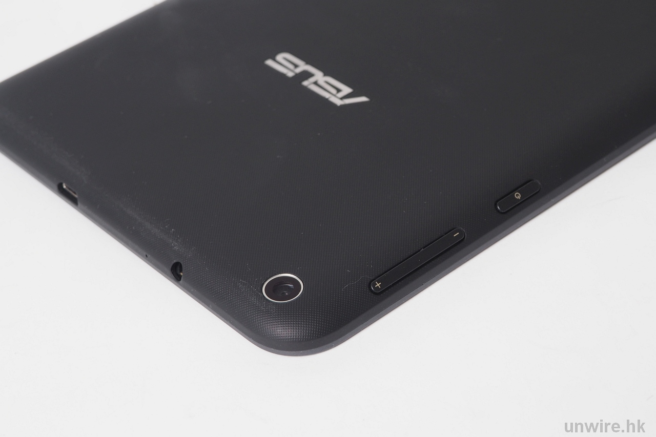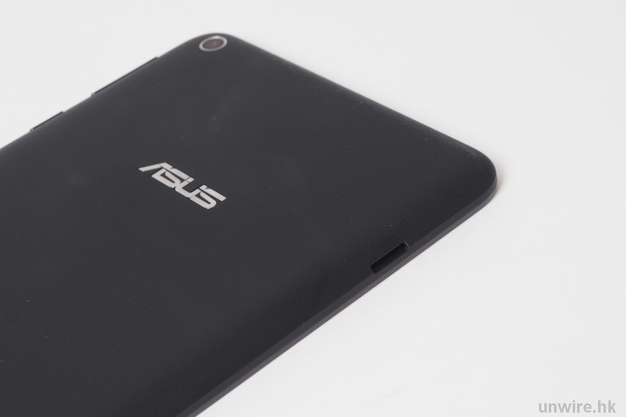 這次 MeMO Pad 8 除了性能提升,機身設計都有多一點驚喜,因為它並非源用上代機殼,重新設計後機身明顯薄身,而且重量大減,現在拿起只是比 Tab Pro 8.4 重一點,而且機背用了凹凸紋設計,防滑手之外,手感亦比 Nexus 7 的膠感較好。