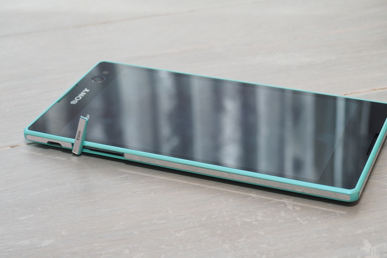 至於手感,Xperia C3 其實很似 Xperia T3,兩者都是超薄身,但又沒太重膠感。此機沒有防水,但旁邊仍備快門鍵,可供拍攝及自拍之用,而為方便自拍,它還增設「敲」機背的拍攝方式,感覺有少少似 LG G2 背鍵,但反應就麻麻敏感。