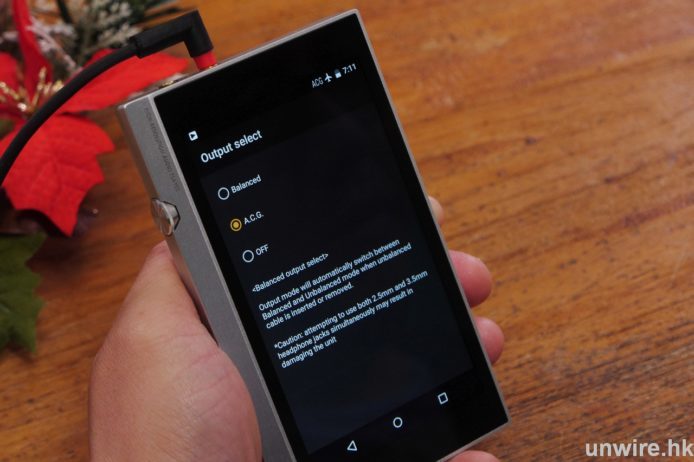 如上文所述,XDP-300R 比舊型號多出一個 2.5mm 4 極平衡耳機輸出端子,但究竟這個平衡耳機輸出有何好處呢?Pioneer 就著該端子,就提供了「平衡」(Balanced)及 A.C.G.(Active Control GND,主動式控地)兩種輸出模式,其中「平衡」模式主要為連接高阻抗耳機而設,可以提供更高的輸出去驅動耳機或耳筒。至於「A.C.G.」模式則可改善聲音的通透感及穩定度,並可帶來更清澈的背景,讓用家能夠親身體驗配備平衡輸出 的 DAP,在配合平衡耳機的實際聲音提升之餘,更可因應喜好及需要在兩種模式中二選其一,玩法較同類產品更為多元化。