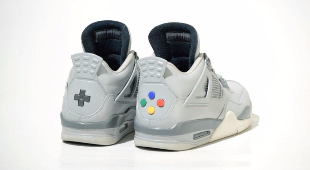 專門為客人訂製球鞋的 Freaker Sneaks,早前製作了一對特別版的 Nike 波鞋向任天堂致敬。他們利用 Air Jordan 4 作為藍本,在配合超級任天堂的機身顏色,最後還加入超任遊戲手掣的四色按鈕和十字掣元素,變成一對獨一無二的特別版 Jordan 波鞋。Freaker Sneaks 為了令效果更加逼真,十字鍵和按鈕都是從原裝超任手掣上拆出來,真的可以按下。