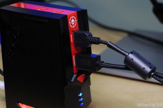 Step 1:首先將自己的鍵盤和滑鼠連接到 Sniper 轉換器,然後再以本身的 USB 線連接到遊戲主機和遊戲手掣。