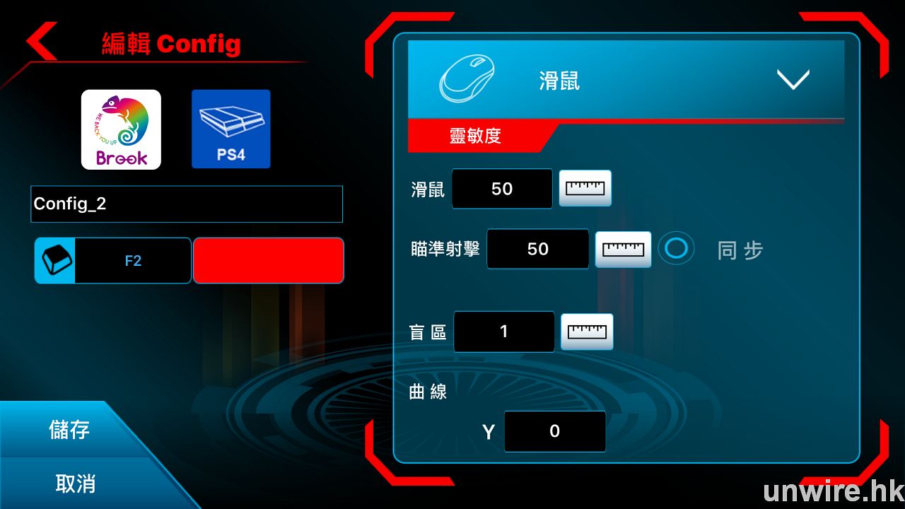 Step 4:及後便可調較滑鼠靈敏度和鍵盤對應於手掣的按鍵,留意在鍵盤設置方面,想更改按鍵,只要在手機 app 內按一下該按鈕,再在鍵盤按下你想使用的那一個鍵,便可更改。當所有設定完成,記得按「儲存」。