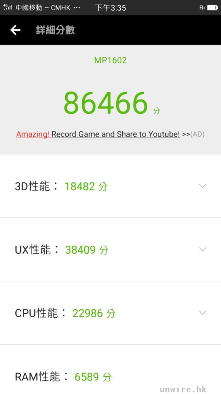 最後效能方面,美圖 T8 採用了 MTK MT6797 2.3GHz 十核心處理器、4GB RAM、Mali-T880 圖像處理晶片及 128GB 內置儲存空間,雖然未至於是頂級旗艦級數,但對於絕大部分用家來講都已經好夠用,最少上下 Facebook 用下 WhatsApp 執下相甚至玩玩類似傳說對決呢類近似 LOL 的遊戲都夠力,問題不算太大。而這個效能級數,筆者再用安兔兔評測測試,獲得 86,466 分,當中 3D 性能都有 18,482 分,都證明了這一點。唯獨是 RAM 記憶體表現只得 6,589 分,可能在多工作業表現上會有所影響,未必可以在背景同時 run 太多 APPS,不過對於一般人來講,最多都係會同時用 3 至 5 個 APPS,所以筆者覺得問題都不算太大。