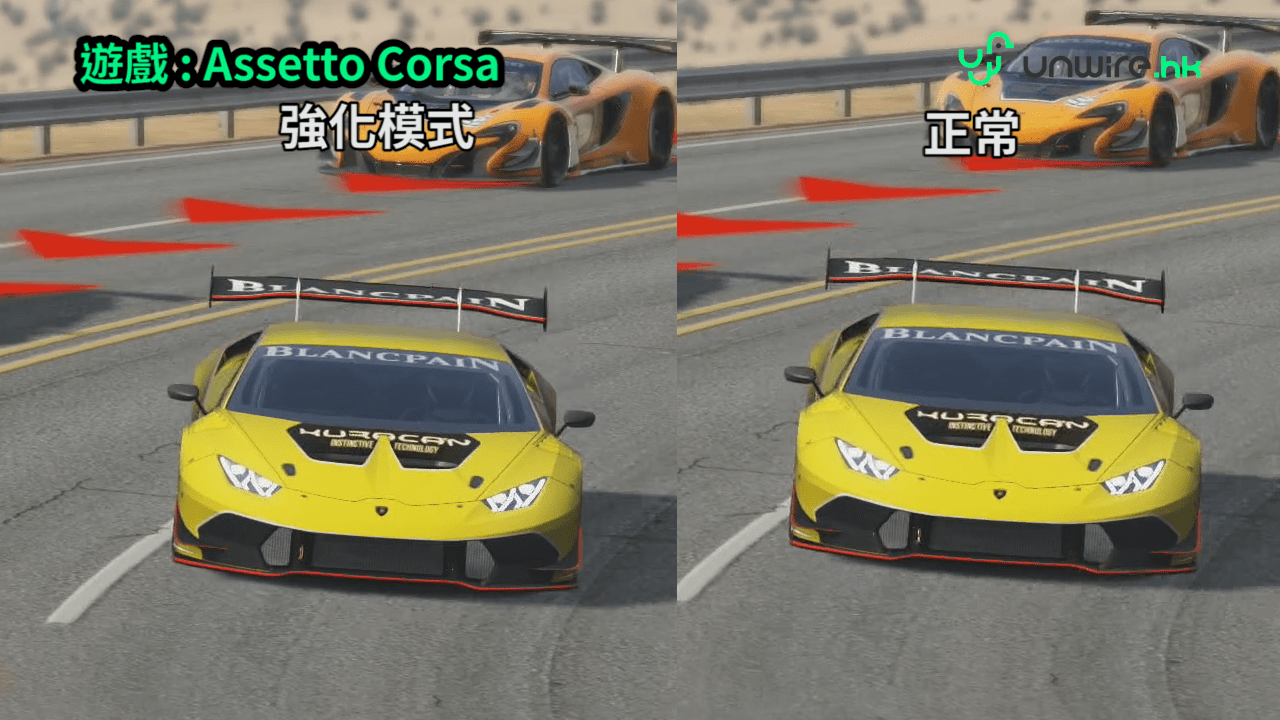 這款遊戲賣點是 60FPS 賽車模擬,它捨棄美麗的畫面以保持 60FPS 流暢,但其實遊戲中途仍然會出現不足 60 FPS 的感覺,開啟強化模式後明顯改善了這問題。這一點可證明強化模式不只限於 30 FPS 遊戲,連 60 FPS 的都有提升。