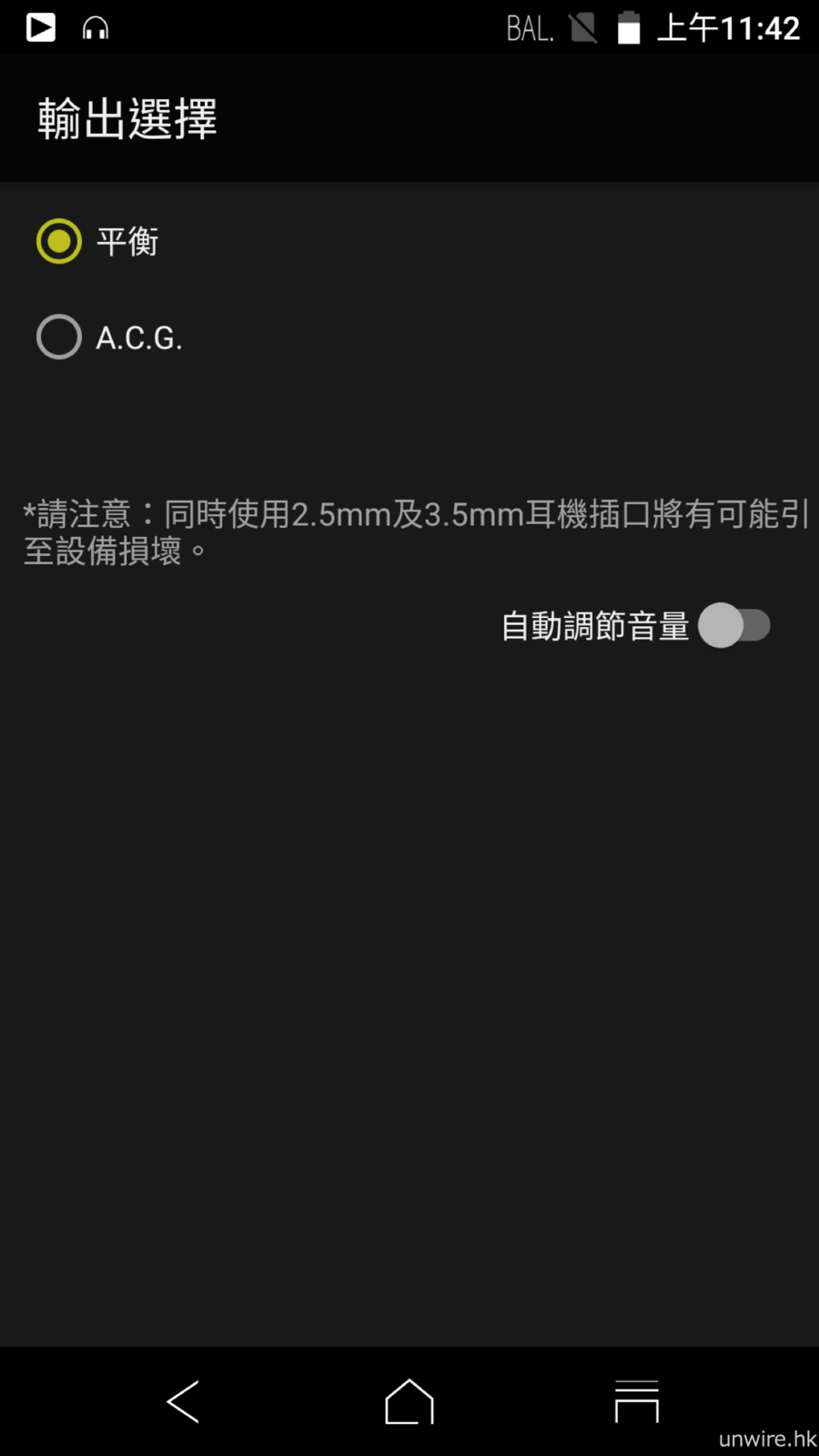 ▲ 2.5mm 輸出繼續對應平衡及 A.C.G. 模式。