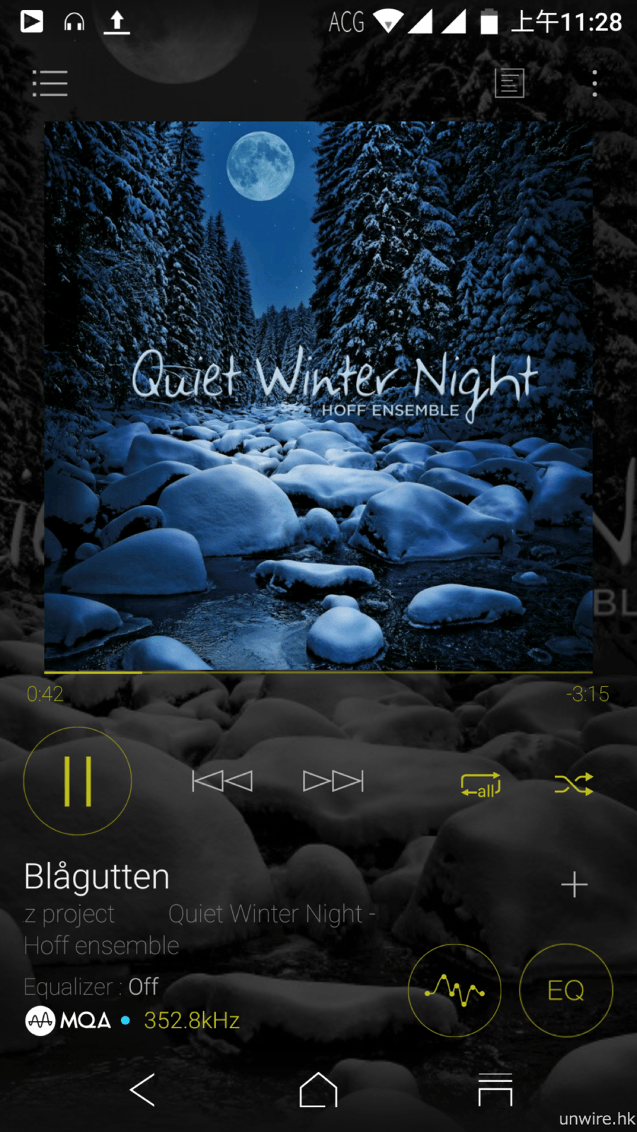 再來試聽原生為 24bit/352.8kHz 規格之《Blagutten》MQA 檔(Granbeat 與 Onkyo 及 Pioneer DAP 一樣已可支援播放 MQA 檔案。)歌曲開首的色士風有足夠明亮感,又不會太過銳利刺耳,而鼓聲及鋼琴聲的大小變化都可分明地呈現。雖則此曲編排偏向複雜,但 Granbeat 仍能處理得有條不紊,不過相對於 DP-X1A,DP-CMX1 所營造的音場飽滿度就仍有輕微不及。