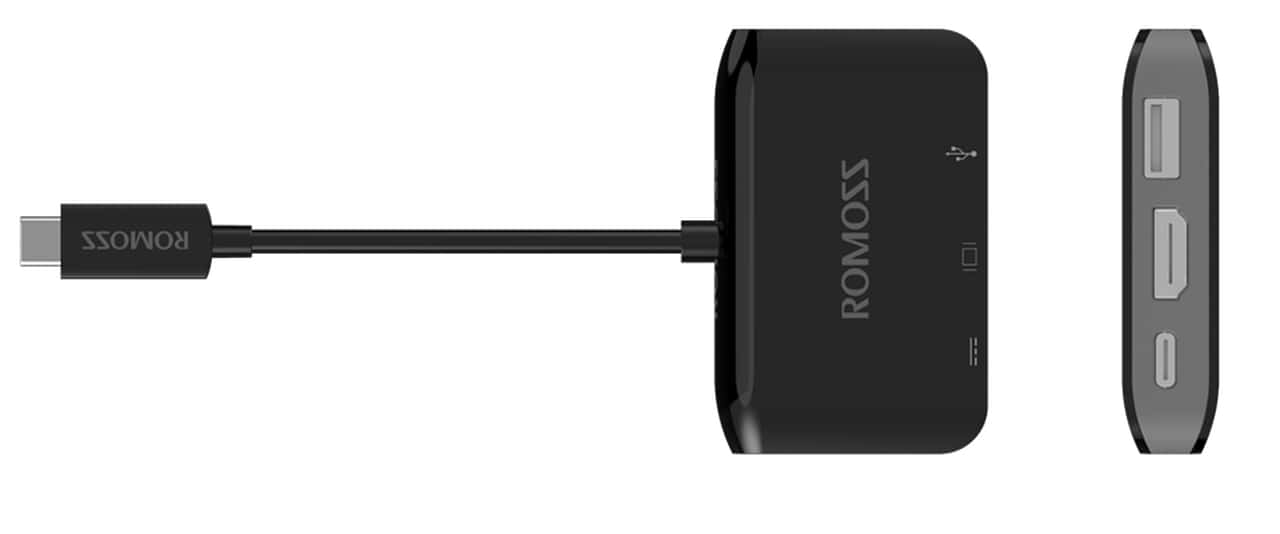 ROMOSS 另一款新推出的產品為 CH04CIA,是一款集影像轉接/資料傳輸/充電三合一功能的轉接器,可以將 Type-C 訊號轉換至 HDM,並支援高達 4K 輸出(3840 x 2160 @ 30 Hz),同時提供音效輸出。另外,它亦支援 USB 3.0 資料傳輸,可連接標準 USB 設備,可連接外置硬碟或相機等裝置,切合主流周邊產品的需要。