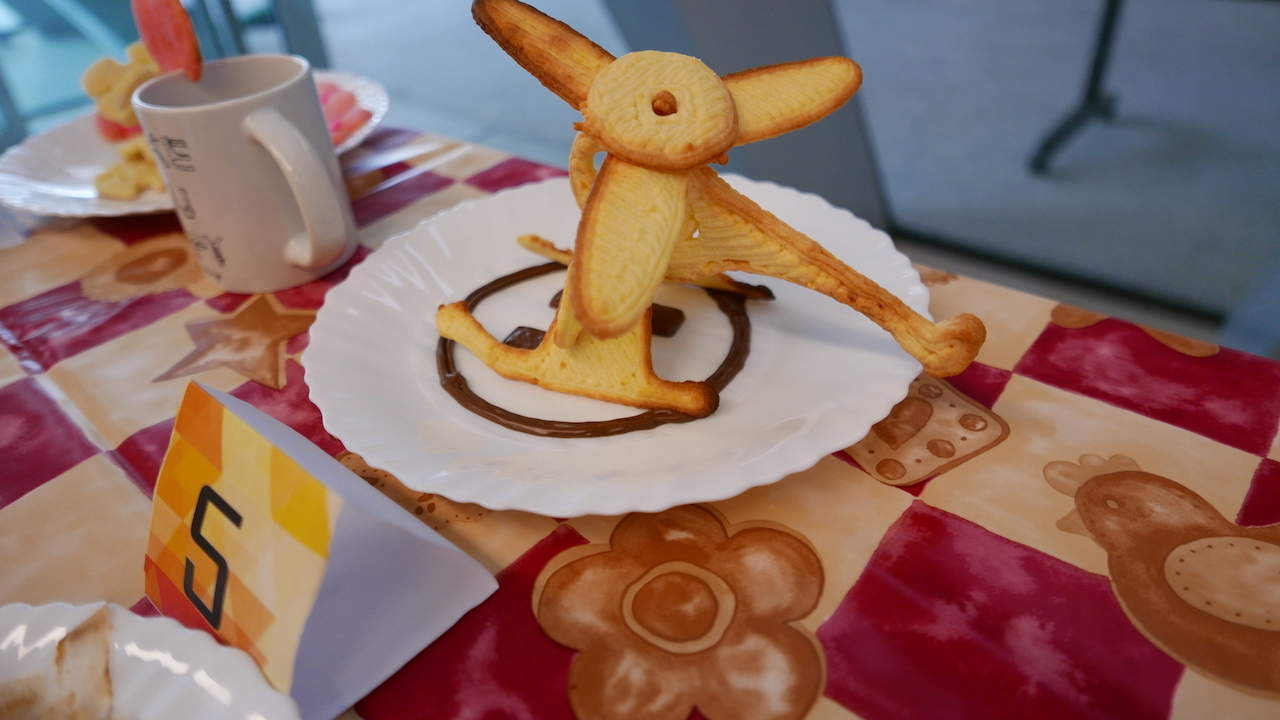 ▲ 公開組有參賽者用 3D 打印出來的曲奇餅加朱古力裝飾砌出貓仔圖案,非常有趣。(圖片由 WEWALab 提供)