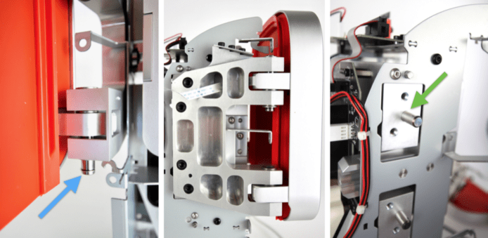 留意機身上方,有一塊設計精良的電路板。這塊像電腦底板的電路板,就包含了WiFi上網功能,還有視像鏡頭與掃瞄器,取得生果包裝上的Barcode條碼。電路板的核心更是一顆ARM處理器STM32F407。電路板還有一個USB插頭,提供日後為榨汁機升級系統程式之用。