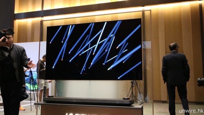 即場試看 65 吋 W7 播放的 HDR 演示片段,與及《悍戰太平洋》 4K HDR 片段,初步感覺 W7 的畫面亮度是顯著較前作有所提升,再加上 OLED 技術天生的絕對純黑優勢,亦從而令整體畫面的立體感更為豐富,顏色亦十分鮮豔奪目,在畫面表現上確實再有進步。同場 LG 亦闢出一個約 500 呎的獨立房間,去展示 W7 Soundbar 輸出 Dolby Atmos 片段時的效果。在觀看 Dolby Vision + Dolby Atmos 示範片段時,感覺 W7 的 Soundbar 系統是可以做到高空及環繞音效表現,但聲音移向效果未算分明,聲音細節亦帶點粗糙,在未設有獨立超低音喇叭下,低頻量感也難以紮實充裕,總括而言「全景聲」應有的立體音場效果是做得到,但個人就認為始終未能取代正規 Dolby Atmos 家庭影院組合。但考慮到現場環境及展示機種仍屬樣品機,艾域將會在 W7 正式推出時,再作詳細的聲畫評測,以體驗這部旗艦級 OLED TV 的真正實力。