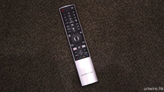 由於 OLED 能夠自行發光、無需背光系統,因此 OLED TV 一直以來已經有著機身纖薄的優點。來到今次提供 65 吋及 77 吋型號的 W7 系列,LG 就更進一步地將所有輸入端子「轉移」到影音外置盒連 SoundBar 系統之中,從而令 65 吋 W7 的機身可以僅厚 3.85mm,而 77 吋亦不過為 5.96mm,即場觀看確實較以往的 LG OLED TV 進一步纖薄。另外有別於傳統電視,W7 兩款型號都不設座檯底座,必須掛牆使用,而 LG 亦為這個系列炮製了緊貼牆身的特製磁石支架,只需簡單地將熒幕「貼上」支架,安裝即告完成。