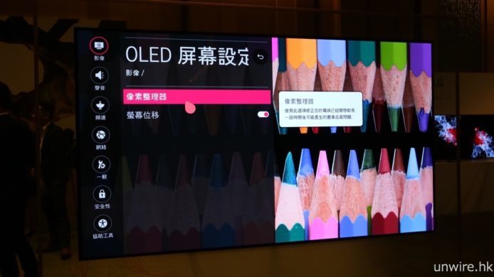 ▲ 選單介面方面與以往大同小異,只是字型稍稍變大,並加入「OLED 屏幕設定」選項,內設「像素整理器」及「螢幕位移」兩種手動消除功能,避免出現燒印問題。