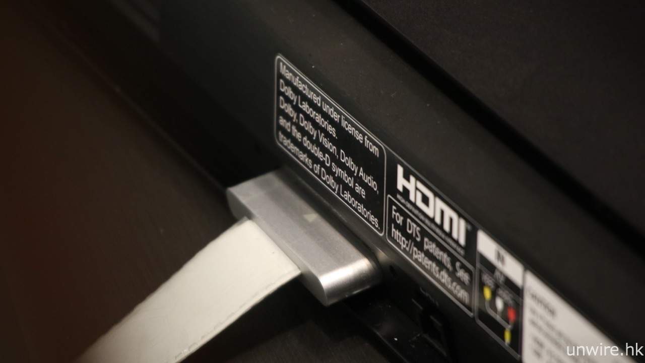 ▲ 為做到超薄機身,W7 所有輸入端子都放至影音外置盒連 SoundBar 系統之中。