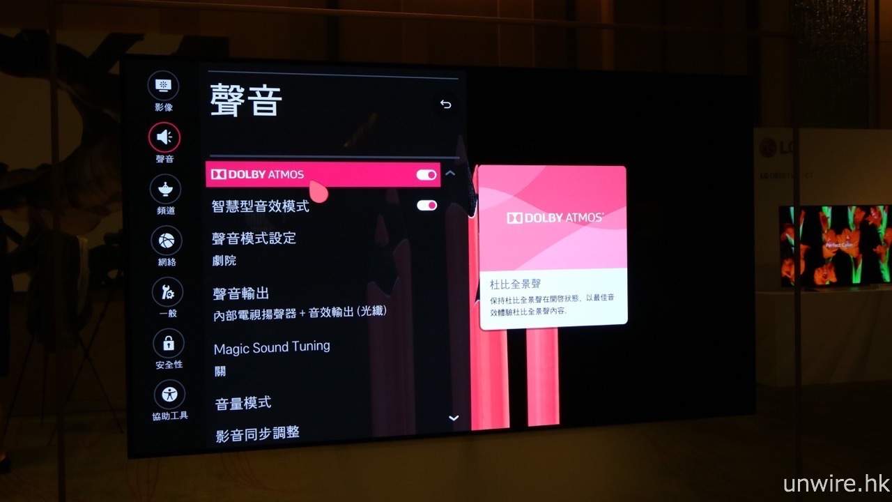 ▲ LG 2017 年全線 OLED TV 均內置 Dolby Atmos 解碼,並可手動選擇是否開啟 Dolby Atmos 音效輸出模式。