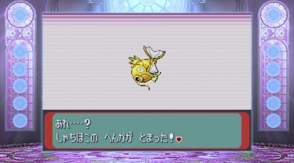 作為《Pokemon》系列最弱小精靈,相信有玩過的人都應該知道鯉魚王到底有幾廢,即使升級後基本能力值仍低得無話可說,初期只有沒攻擊力的招式「躍起」,而之後亦只能學到「撞擊」及「抓狂」兩招物理攻擊,理論上大多數人都不會使用牠來戰鬥。不過日本玩家 レオモン 原來早於 2011 年時就決定挑戰極限,並嘗試只以一條黃金鯉魚王去打爆《Pokemon》紅寶石版,為此他就花了接近一個月遊戲時間去釣了約 4 萬條鯉魚王,最後終於成功獲得了一條超稀有閃光版黃金鯉魚王。