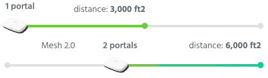 Portal Wi-Fi 擁有最新的 AC2400 網路技術,採用最新的 4T4R MU-MIMO,可讓 4 台設備同時連接 Portal Wi-Fi 並傳輸而不會分享速度。認證的 DFS 頻道(DFS 頻道用於軍用設備和氣象雷達,因此此頻道會較少干擾),亦可避開多設備使用的頻道,以減低干擾令速度提升。路由器內置強大的 Wi-Fi 天線以擴大無線通訊範圍,接收距離能夠覆蓋 3,000 平方尺。