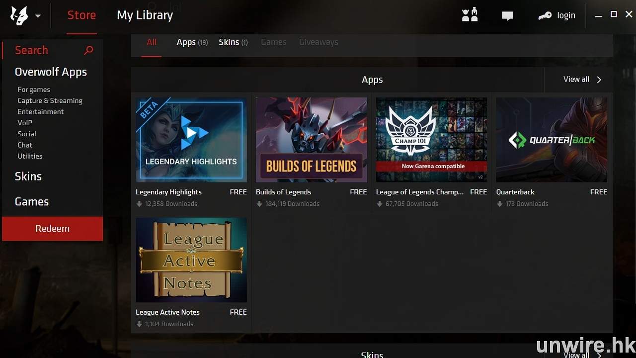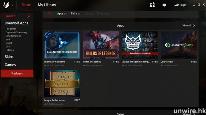 ▲在 OverWolf 內有 AppStore 可以搜尋不同遊戲的可用插件。