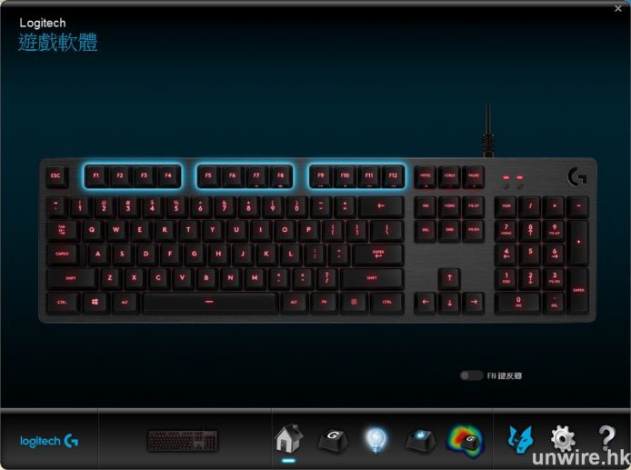 對於現時不少遊戲,在操控上都可能需要用到不同的按鍵組合,以往玩家都會尋找不同的 Marco 軟件,令遊戲進行時更有利,但設定時就要花上不少的時間。隨著越來越多廠商推出針對遊戲的周邊產品,像 Logitech 亦有專用軟件 LGS,可以全面控制鍵盤的所有功能。玩家除了可以透過自行建立不同遊戲的專用 Profile 之外,更有一按即掃功能,自動尋找已安裝的遊戲,並與伺服器上的 Profile 進行配對,自動為玩家設定所有常用的功能或 Marco 組合。當然,亦可以透過軟件設定背光燈的閃動頻率,甚至監測玩家進行遊戲時經常使用的按鍵等等。