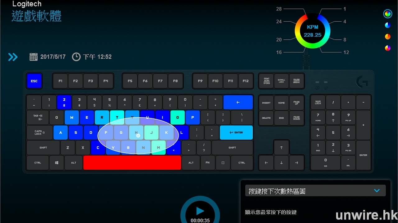 ▲利用當中的熱區圖,就可以監察到當玩遊戲時較常使用的按鍵。
