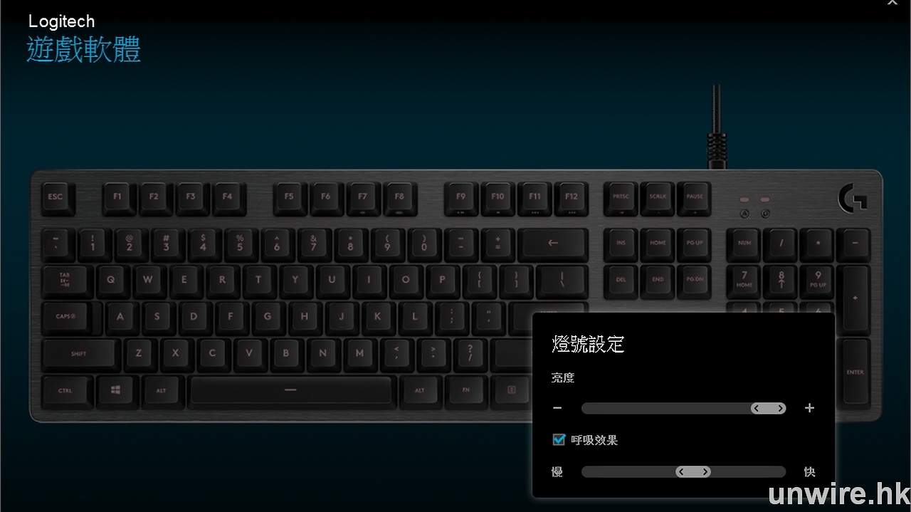 ▲G413 的背光顏色雖然是固定,但可透過軟件調校強弱或開啟呼吸效果。