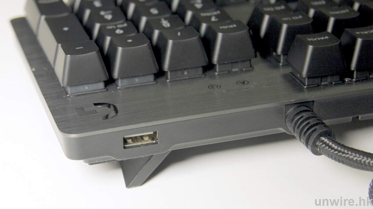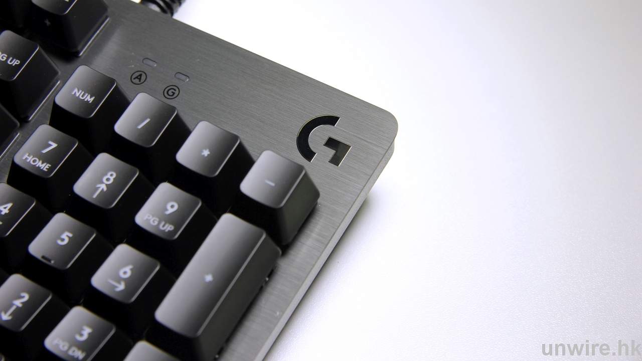 當首次接觸 G413 已經覺得其整體重量較一般鍵盤重,再打開包裝就可以看到 G413 的外殼表面採用了航空級鋁鎂合金物料,配合拉絲設計除了給用家一個更有型的感覺之外,對於玩家來說,加入金屬外殼後令到 G413 的整體重量都有所增加,使用時就更「穩陣」。始終,在進行 MOBA 這類遊戲,每秒鐘要按下多個不同的指令,G413 較「穩陣」就算在激烈遊戲中,就能減少因快速按下多個按鍵而出現的移位問題。所以,鍵盤加上金屬面並非只是外觀上的改變,而是有實際作用。