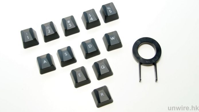 ▲附送拔鍵器和 12 個在遊戲採用八字形切割的鍵帽。