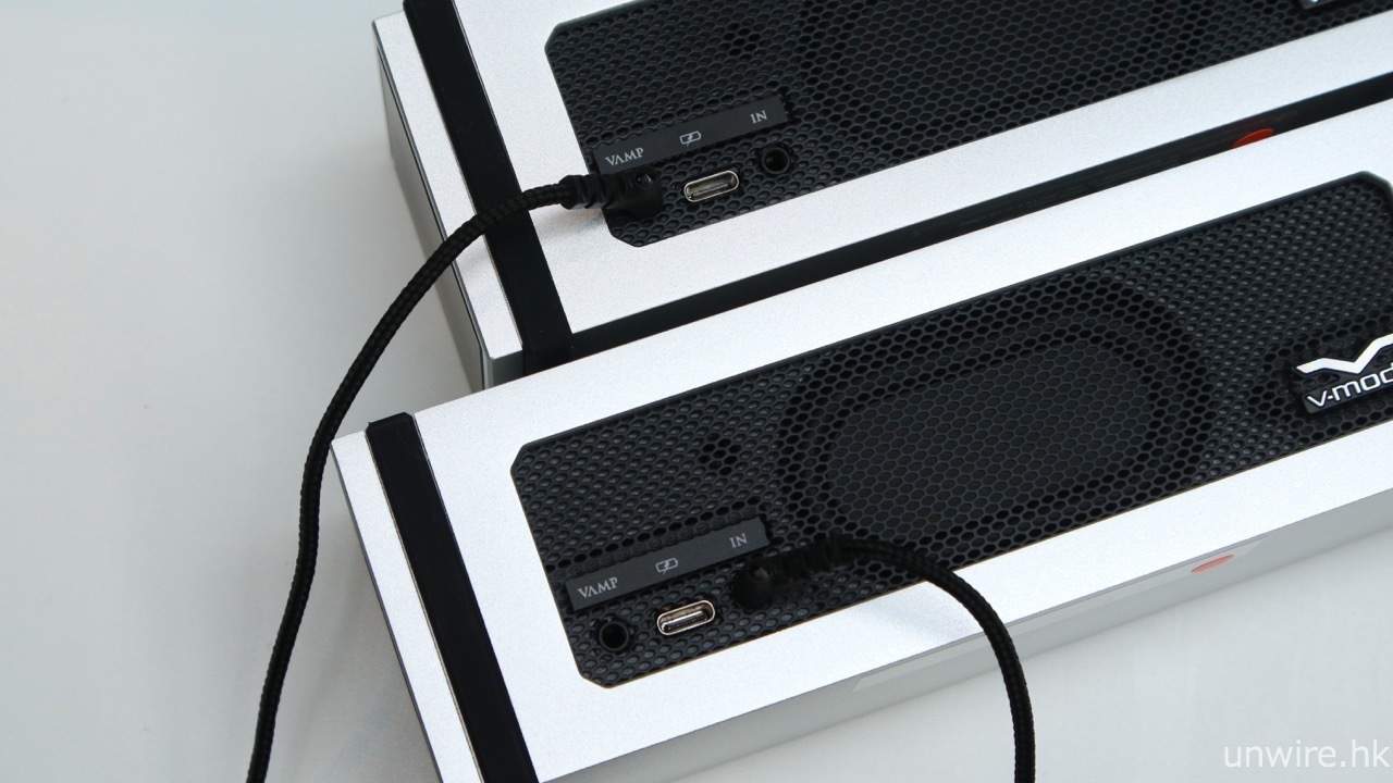 ▲ 有別於一般的藍牙喇叭,Remix 用上 USB Type C 端子作充電,充電一次可使用 10 小時,更內置最大 83mW x 2 輸出功率的 VAMP 耳擴功能。