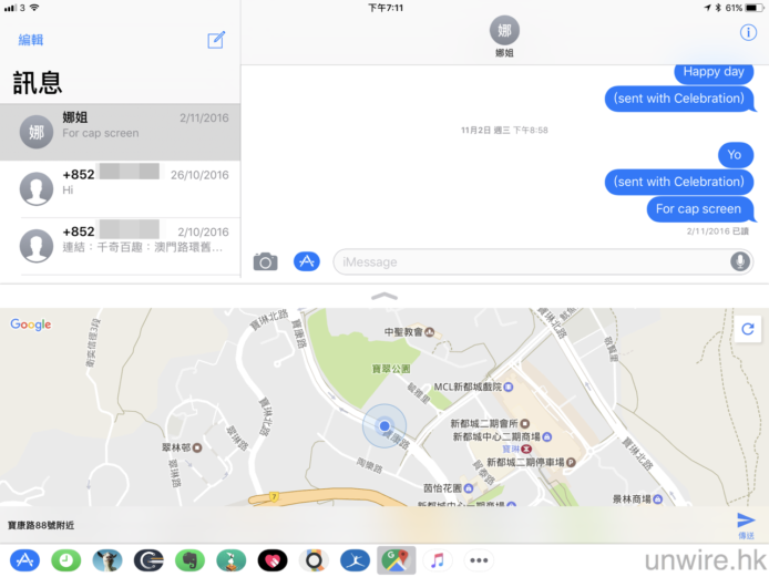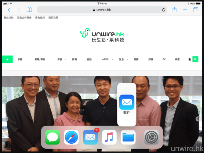 ▲如果在程式中,Dock 會消失,但如果從熒幕下方向上劃,Dock 就會重視,方便大家切換使用程式,又或者雙開程式。