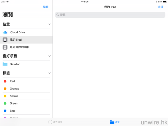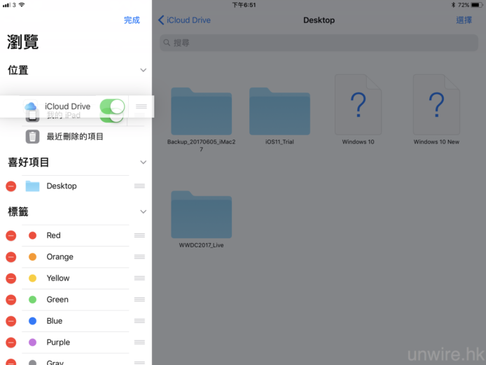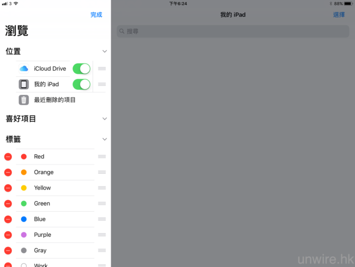 ▲Files APP 是可以加入第三方雲端平台,方便用家管理檔案的,不過在這次 beta 版本中就暫時未見此功能加入。此外,點按左欄右上角的編輯,不但可以選擇連接哪些項目,亦可以為它們調位。