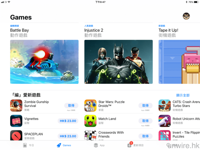 ▲全新的 App Store 介面,與過往可說是天淵之別。首頁變為「今日」,會顯示今日重點推介或新推出的 APPS 或遊戲。