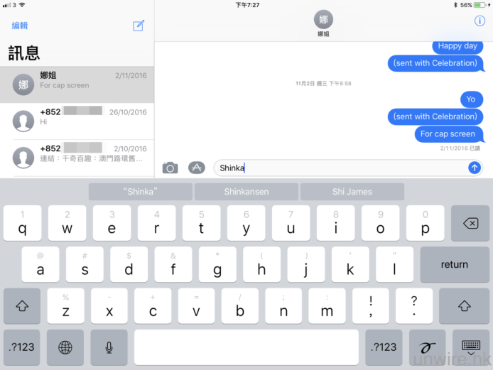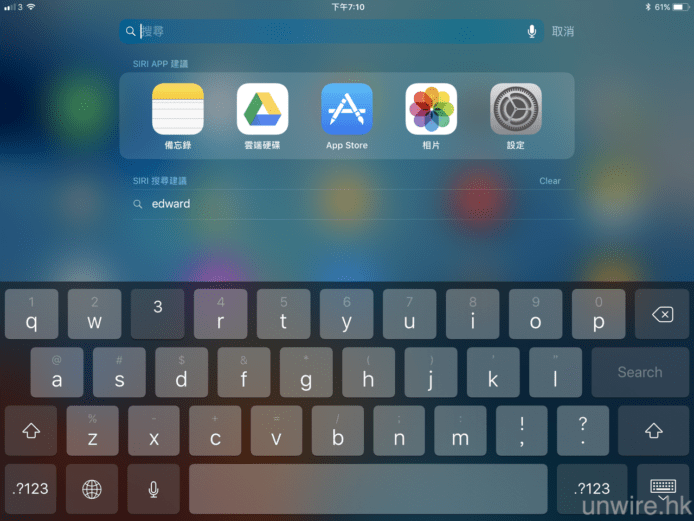 ▲大家可以見到 iPad 升級至 iOS 11 後,每個字母按鍵除了字母外,還加入數字或符號。