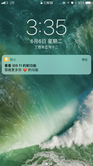 今次 iOS 11 主介面其實未見與過往有太大分別,提示中心亦與過往分別不大。當然,講起分別還是有的,最明顯就是左上角的網絡訊號圖示,又改回 iOS 6 時的長方棒顯示模式,而非過去幾代所用的圓點。