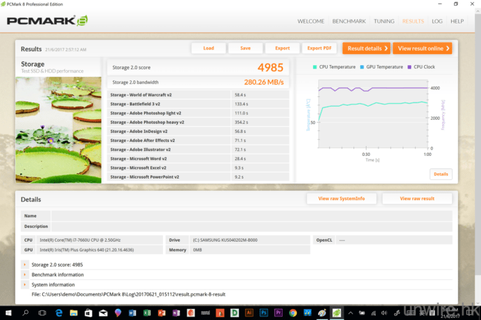 ▲而內置的 Samsung SSD 儲存方面,就獲得 4,985 分的高分,可見讀取及存取速度表現令人十分滿意。