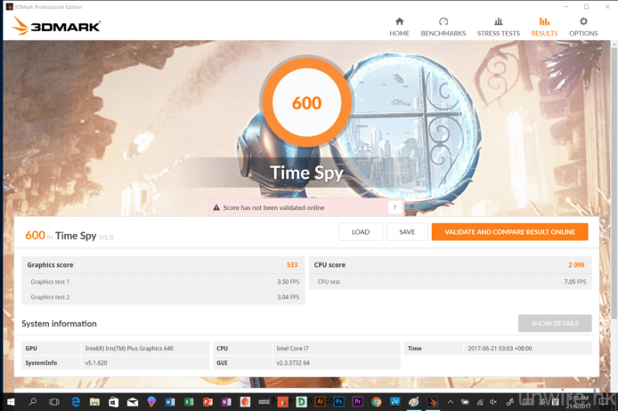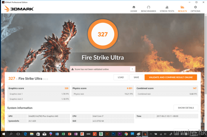 ▲圖像處理方面,筆者使用了 3DMark 中的 Time Spy 及 Fire Strike Ultra 測試,前者測試 DirectX 12 遊戲處理的表現,而後者就是測試 4K 遊戲運作,兩者分別獲得 600 分及 327 分,可見用來玩一般遊戲都勉強可勝任,但玩對圖像處理要求中高水平的遊戲,就難以勝任了。另外,由此推論,如果大家以 NSP 執行一般相片、影片或多媒體編輯,應該沒有太大問題,但要用來剪 4K 片,效能就會比較差了。