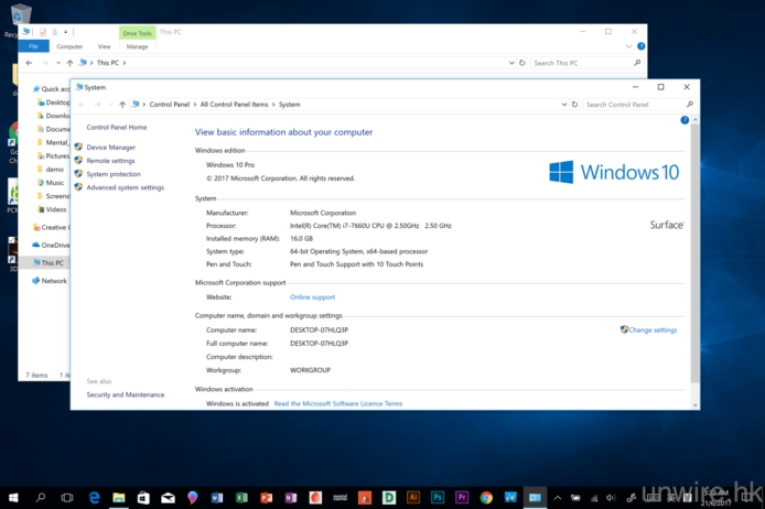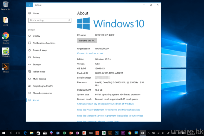 ▲預載的 Windows 為 Windows 10 專業版,而且是最新的 Creators Update,內建遊戲模式、3D 小畫家等功能。
