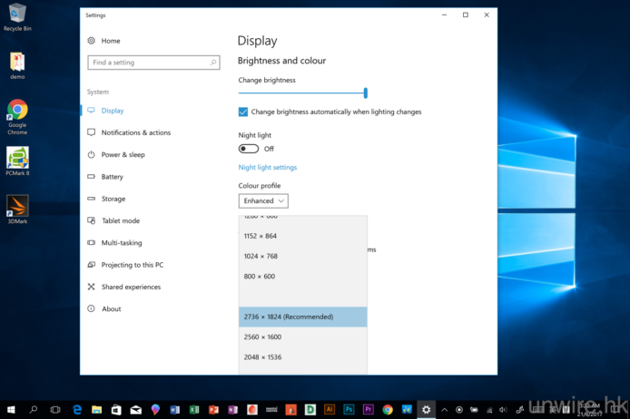 ▲但以筆者的使用體驗所知,大家將熒幕亮度及效能均設定為 Recommended 其實已足夠一般使用。