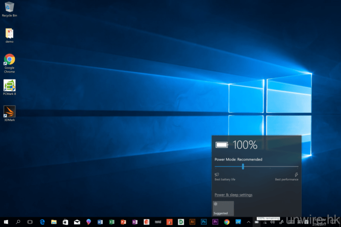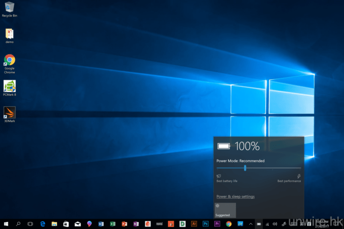 ▲只要大家點按右下角的電池符號,就可以見到調整效能及熒幕亮度的設定欄,如果想高速運作,大家可以將效能模式調校至 Best Performance,但就會十分耗電。