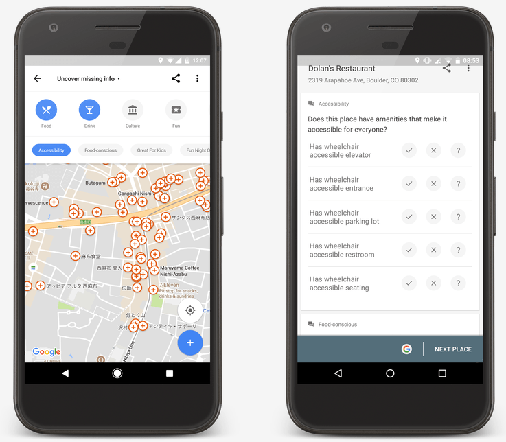 用戶可以提交無障礙洗手間、電梯、停車場等設施的資料,這樣 Google 就毋須等候餐廳或場地負責人更新資料。現時無障礙設施的資訊可以在 iOS、Android 和桌面版 Google 低頭看到,但暫時只有 Android 用戶可以提交資訊。要協助殘障用戶外出更方便,Android 用戶可以在 Google 地圖點擊 Main Menu > Your Contributions > Uncover Missing Info,然後再在 Accessibility 內加入資料。至於無障礙設施的資料,用戶在 Google 地圖或搜尋結果都可以見到。