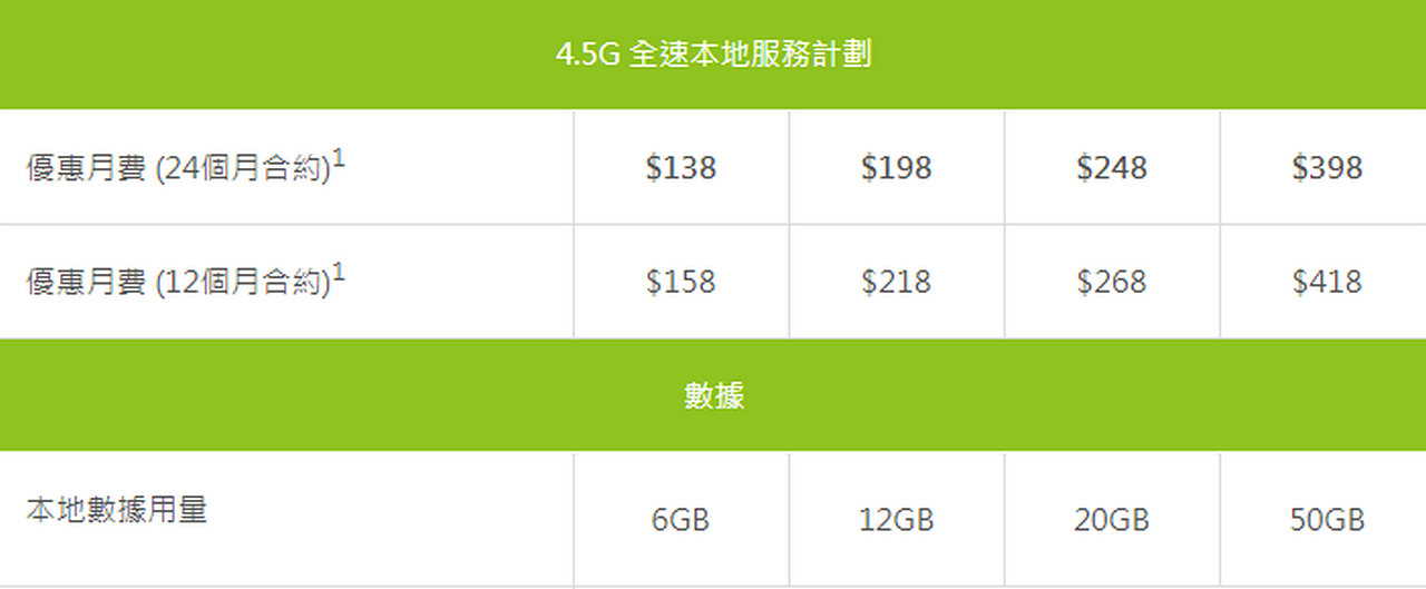 除了入門 6GB 數據量之外,同時亦有更高用量的 12GB、20GB 以及最高的 50GB 數據用量以供選擇。一個月不用 $400 便有 50GB 用量,平均每 GB 都唔洗 $8,無論各位 wire 民想搭車時追劇或隨時開 Live 都足夠有餘,不用擔心「爆 Data」,更多詳情可參考以下表格或<按此>。