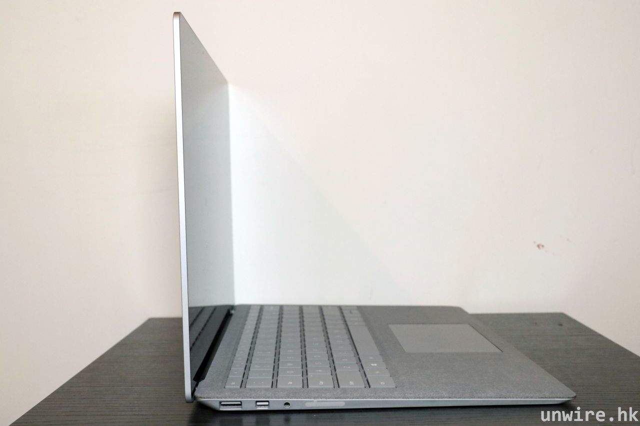 此外,Surface Laptop 重量只有 1.25kg,厚度亦只是 14.47mm,雖然未至於極為輕薄,但輕薄程度以一部擁有 13 吋熒幕的手提電腦來說,已不是十分重,外攜使用亦不困難。