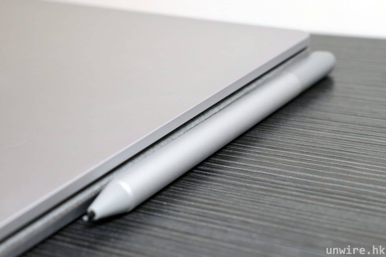 ▲不過似乎吸力沒有在 Surface Pro 系列上般強,一拿起 Surface Laptop 搖兩搖就會甩出來,而放平在檯面時,Surface Pen 亦會被檯面「頂起」而與機身有少許分離。
