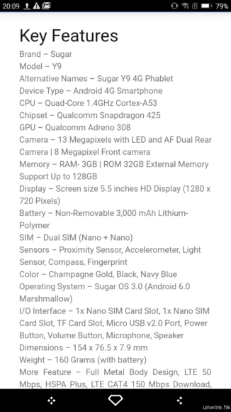 ▲Sugar Y9 採用了 5.5 吋 720p 熒幕。