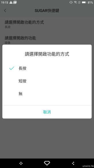 ▲設定中只有長按及短按,所以實際上只能設定兩個功能。