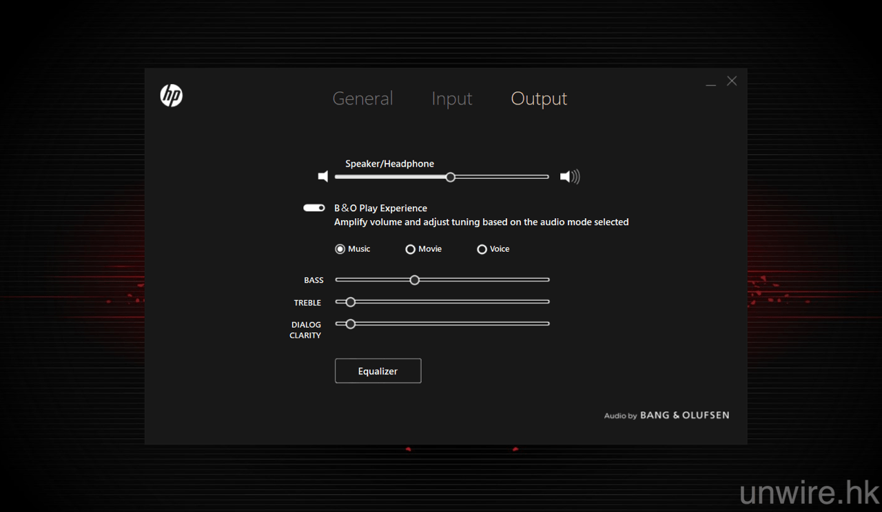 ▲另外,設定音效輸出的介面中,用家可以設定音效模式,例如:聽歌時採用音樂模式,亦可以自行設定低音、高音及人聲清晰度。