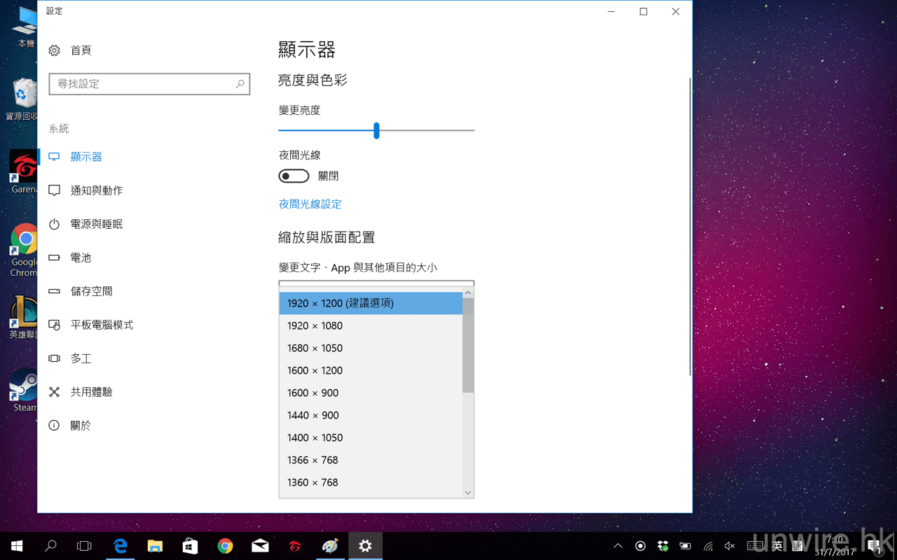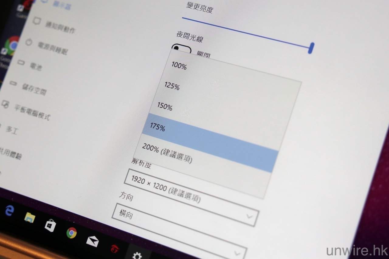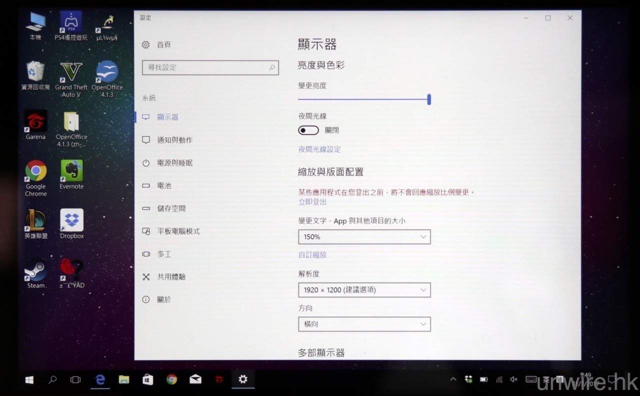 ▲雖然熒幕解像度有 1920 x 1200,但如果用盡這個解像度,無論程式圖示或者文字都會太細,在 7 吋熒幕上太難用了。